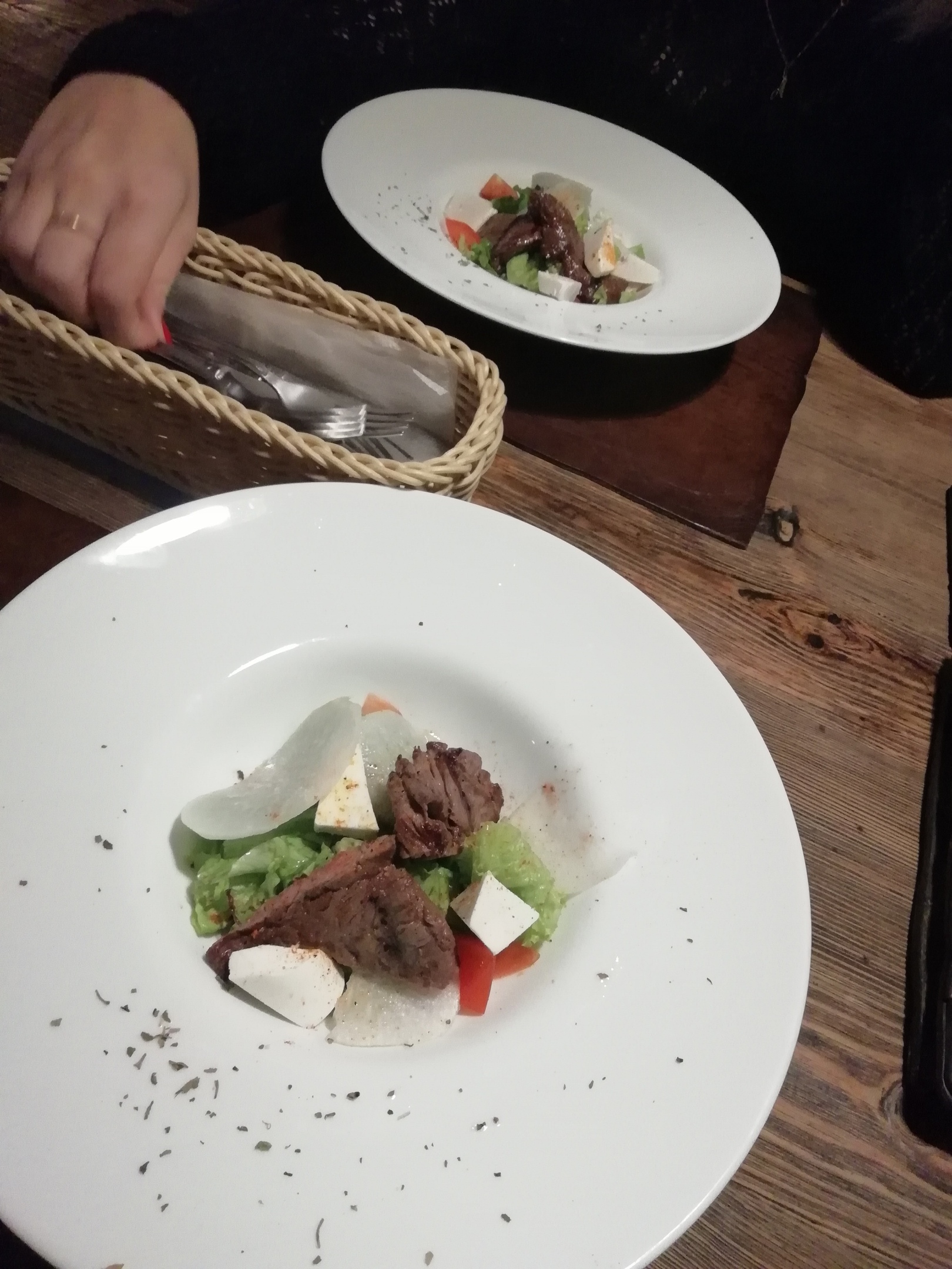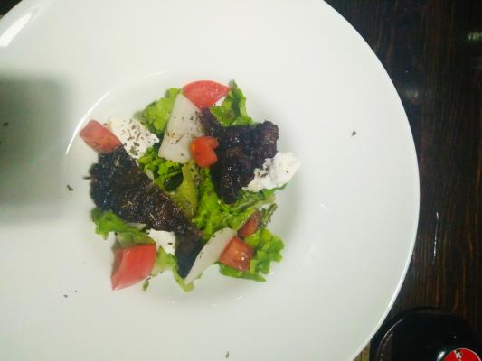 - ужин №1 (медальоны из говядины с соусом Демиглас и ризотто с трюфельной пастой + легкий салат с пармской ветчиной и сыром Дор Блю:): 35 р. 70 р.