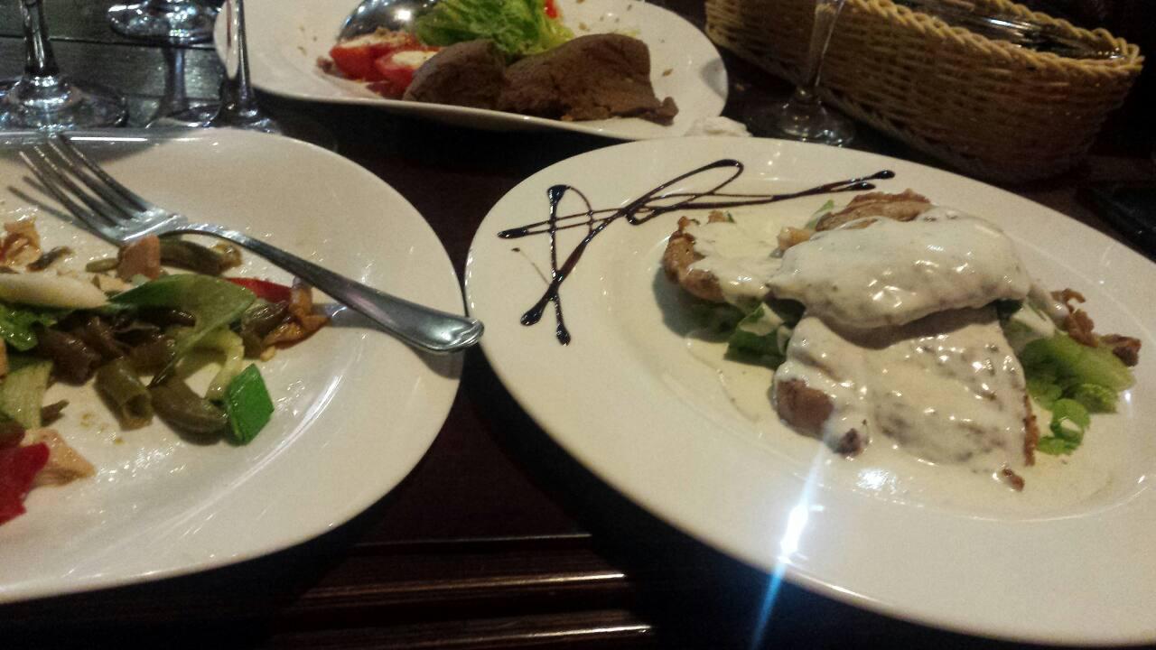 - ужин №1 (медальоны из говядины с соусом Демиглас и ризотто с трюфельной пастой + легкий салат с пармской ветчиной и сыром Дор Блю:): 35 р. 70 р.