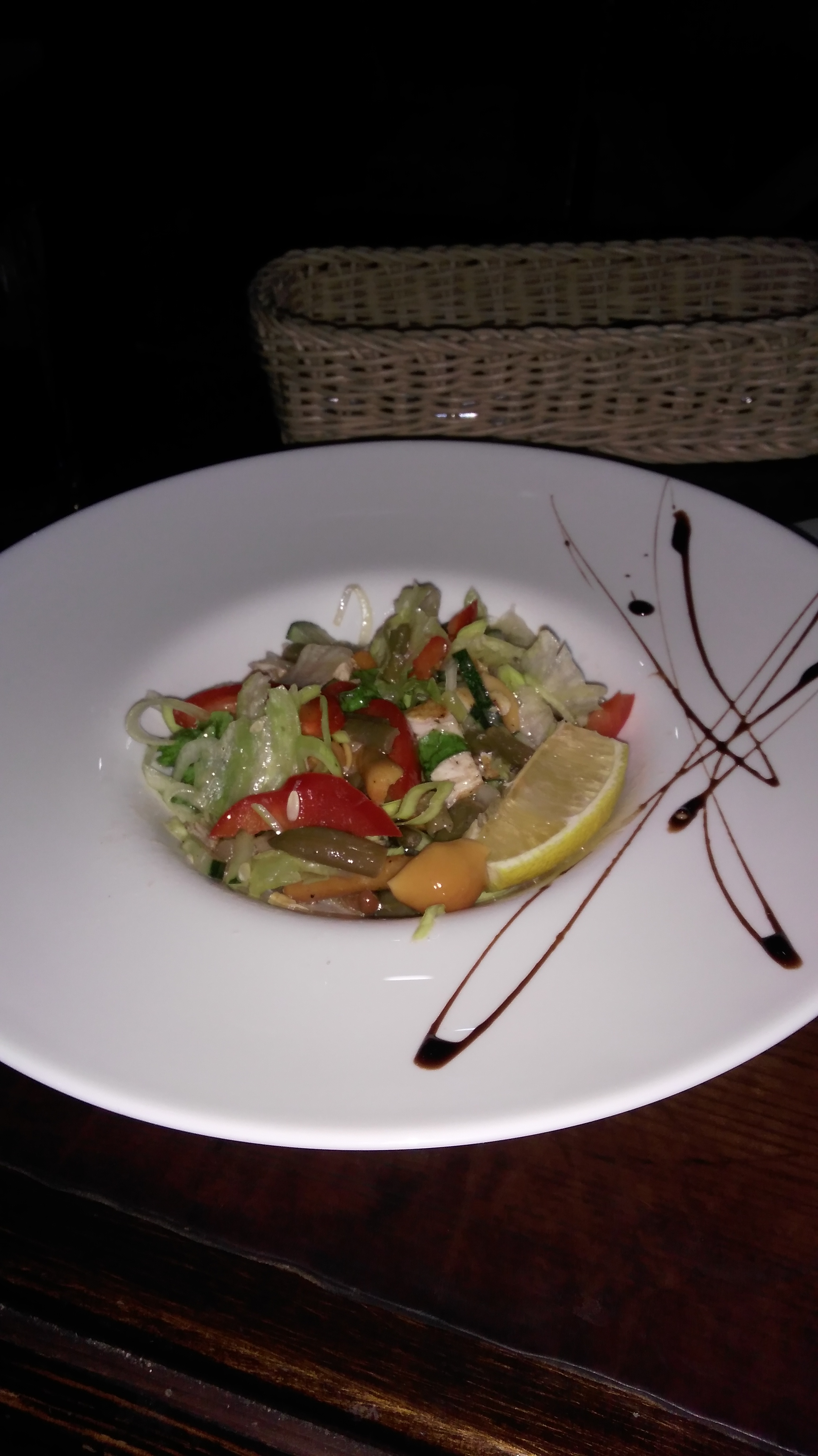 - ужин №2 (филе судака на подушке из овощного пюре + салат с тигровыми креветками и авокадо в миндальной стружке): 35 р. 70 р.