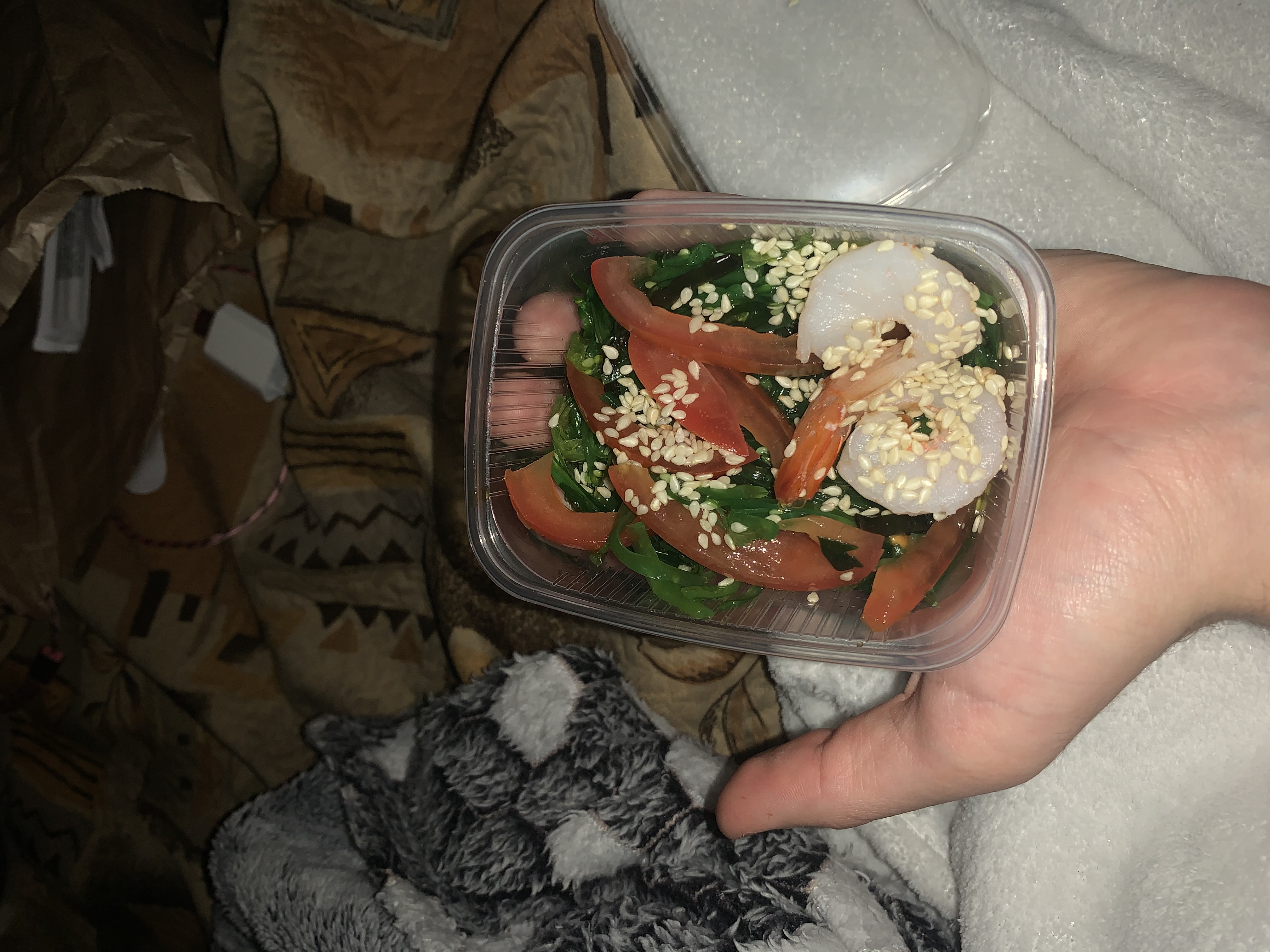 Состав: морской коктейль, соус соевый, соус Tabasko, чеснок, кунжут, водоросли морские, томат |
