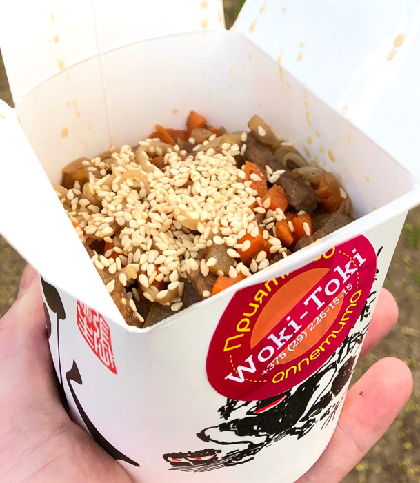 Состав: лапша рисовая, говядина, соевый соус, соус устричный, морковь, лук репчатый, перец болгарский, кунжут |