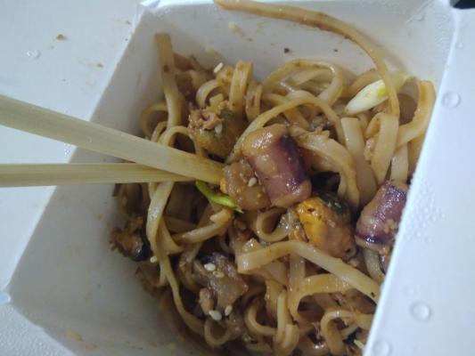 Состав: лапша рисовая, говядина, соевый соус, соус устричный, морковь, лук репчатый, перец болгарский, кунжут |