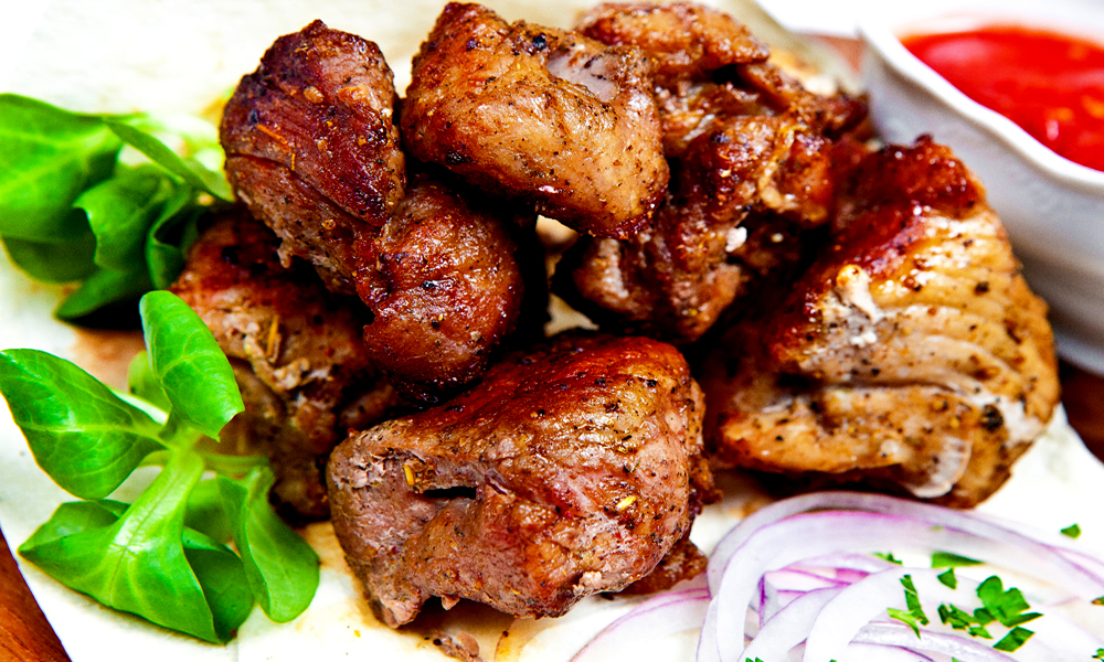 В ресторане есть мангал, где готовят традиционный шашлык - визитная карточка кавказской кухни. Обязательно гриль-карта, а также в меню представлены мясо в разных формах приготовления: мясо тушеное, мясо запеченное, мясо жареное, мясо вяленое и т.д.