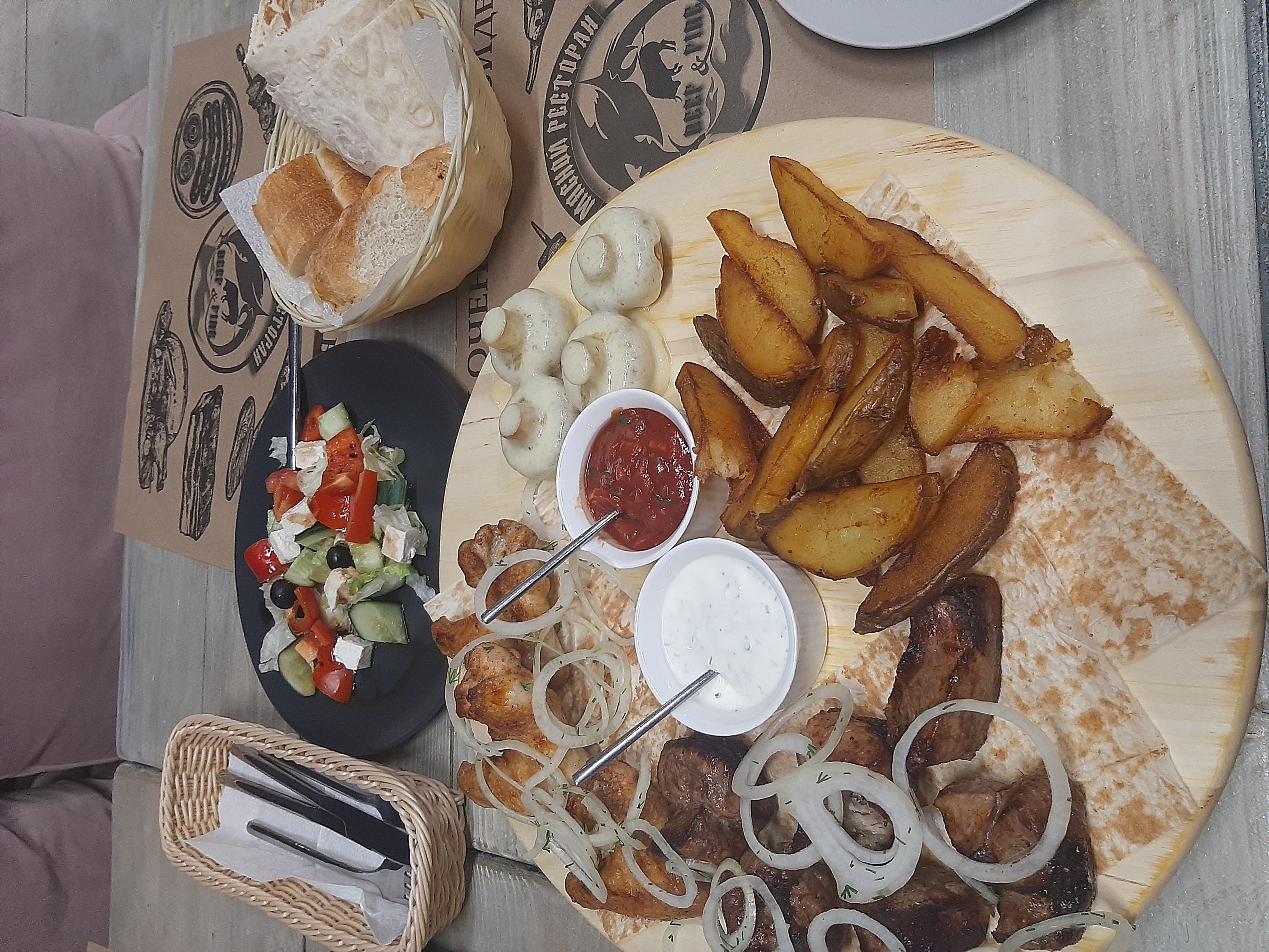 брали шашлычный сет на двоих. всё очень вкусно! мясо нежное и сочное