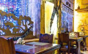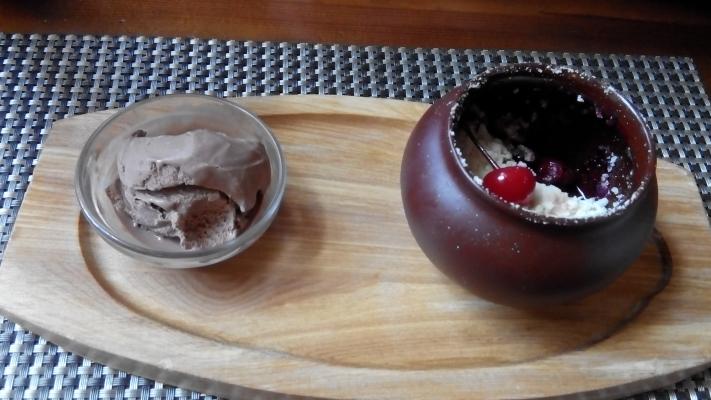 Ресторан очень внутри колоритный, интересный. На счет меню могу сказать, что принесли горячее в виде сырой курицы. Но мы люди не скандальные и отнеслись с пониманием. Девушка  официант извинилась и через некоторое время принесла дожаренное))) блюдо.   Я думаю ребята исправились и больше не допускают таких ошибок, причем нас в ресторане было всего несколько человек. Десерт был прекрасен.  Можно вернуться, но пока лучше испробуем новые места, так как можно было не допускать подобных случаев.