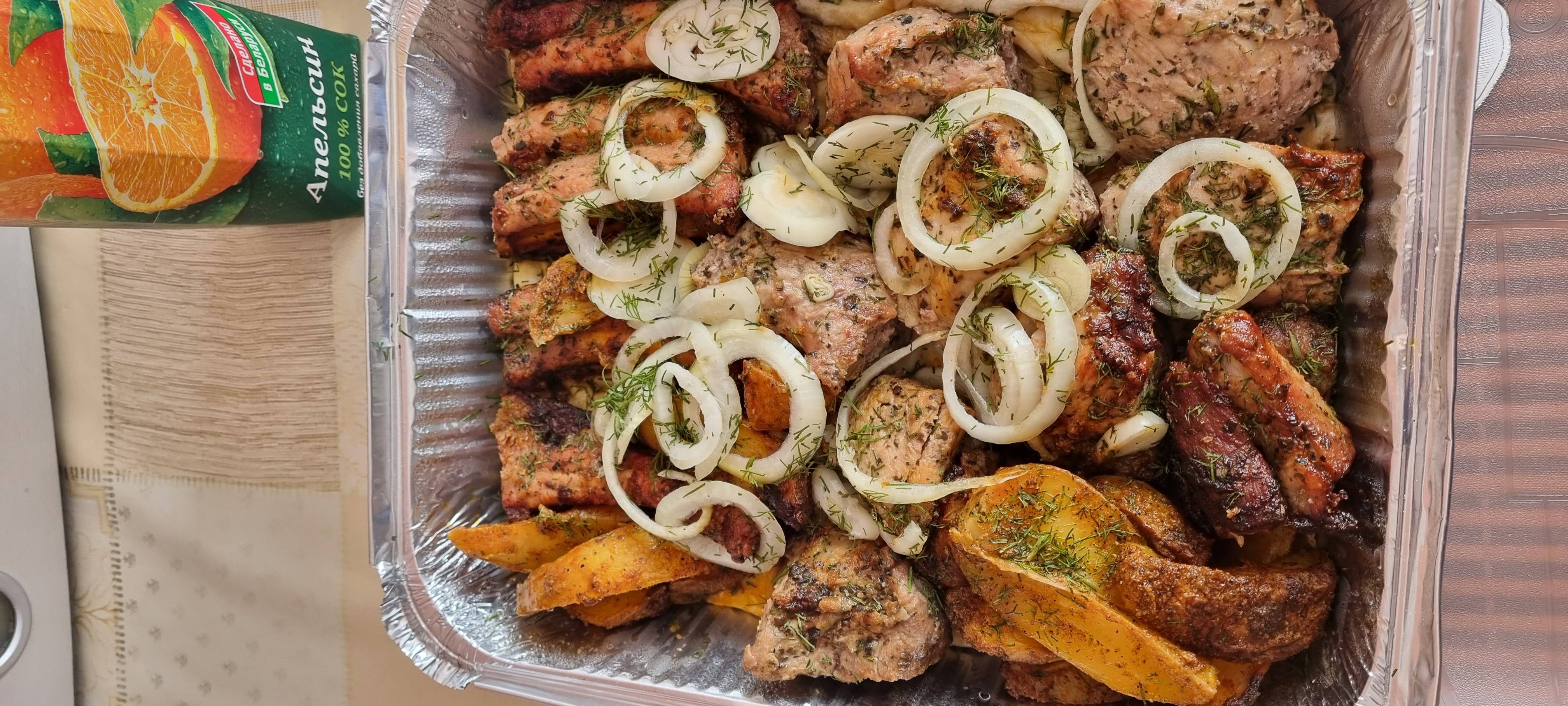 - Не доступны к заказу "Turkish", "Big chicken", "Vegetarian", "River Fish", "Village", сет из свиных пластин, сулугуни, шампиньоны, картофель порционно