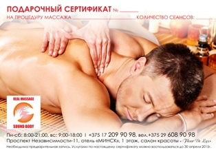- Подарочные сертификаты на SPA и массаж в центре Минска