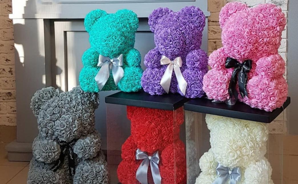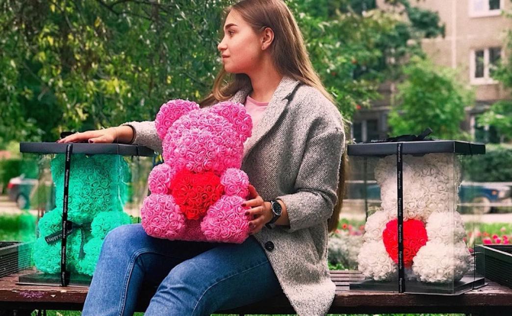 Мишка из роз – это долговечный подарок, который может простоять 3 года.