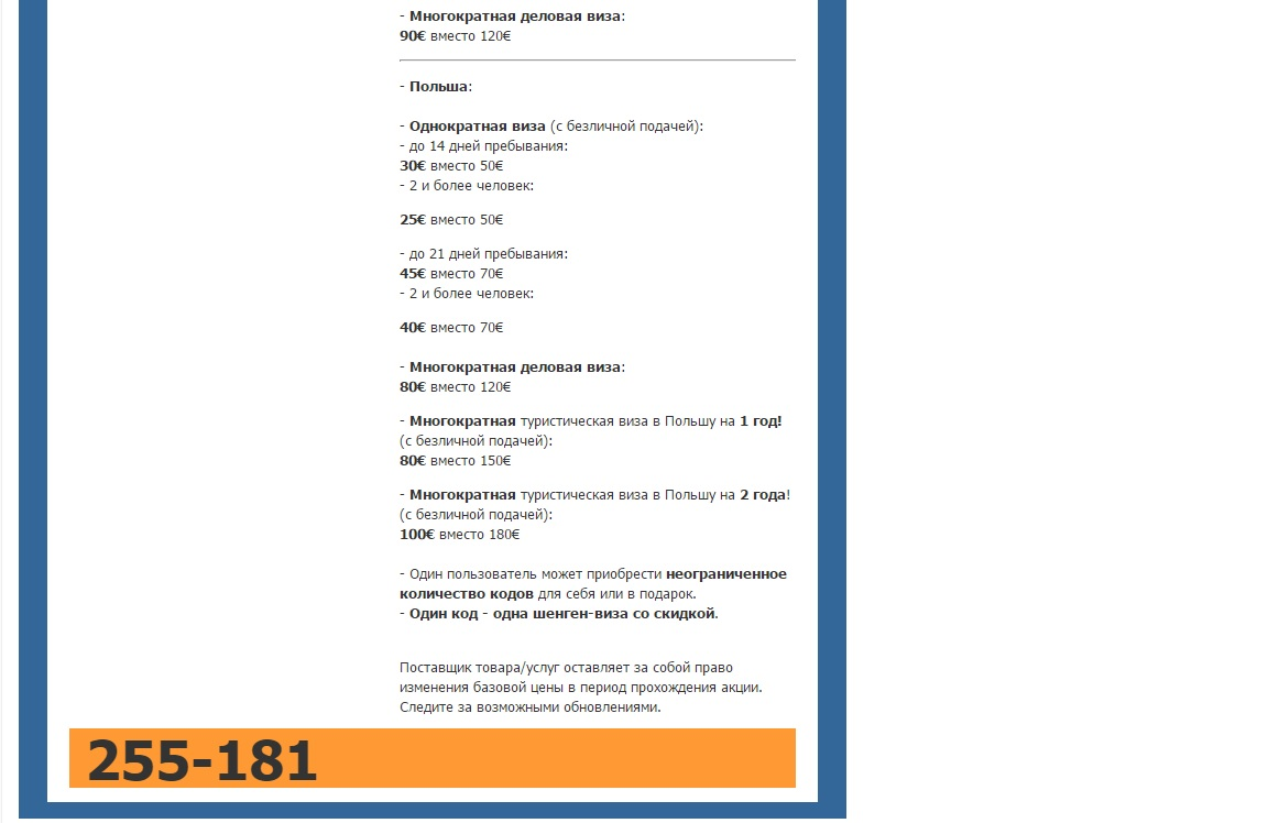 Ой, прошу прощения, перепутала! Брала код вот на эту акцию http://www.slivki.by/visa-shengen-skidka