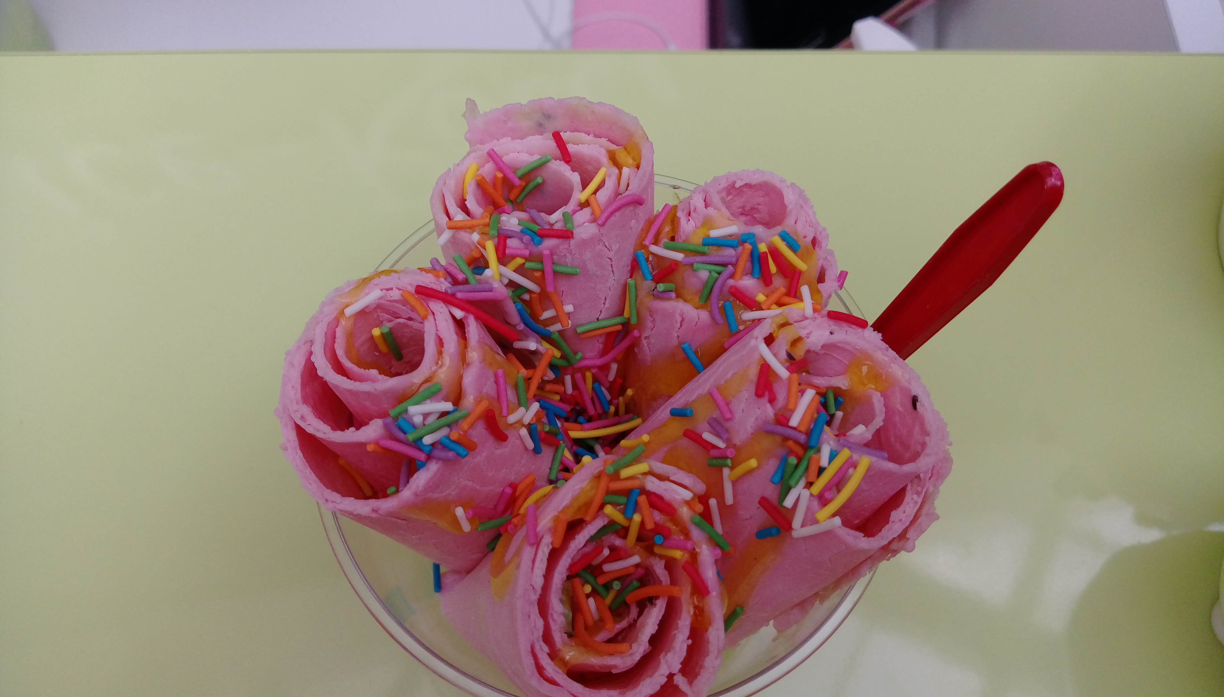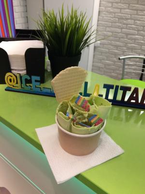 Мы сегодня были в титане :) первый раз попробовали айс-роллы! Вкусняшка и эстетически приятно :) милая девушка приготовила 3 порции мне и двум деткам- все счастливы