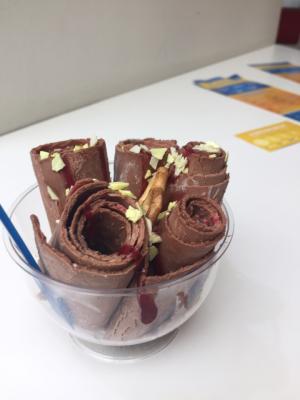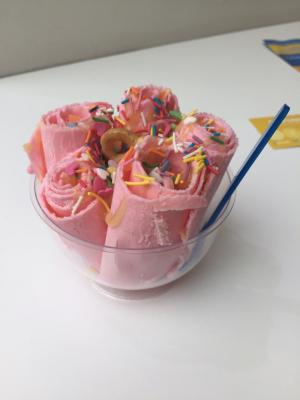 Очень вкусное мороженое, чудесная девушка продавец и необычный процесс) Собирайтесь группами по три и вперед за сладким наслаждением)