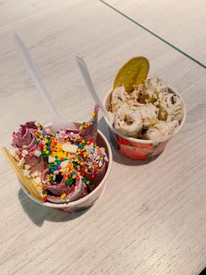 Самое вкусное натуральное мороженое! И самая необычная подача) смотришь как маленькое шоу👍🏻👍🏻👍🏻Отдельное спасибо хочется сказать мужчине который делал мороженое: сразу поинтересовался пробовали ли мы такое мороженое, когда узнал что нет-рассказал как правильно выбрать основу, ингредиенты и добавки, в конце поинтересовался понравилось ли все! Никогда не встречали такого сервиса!100 из 100!!!