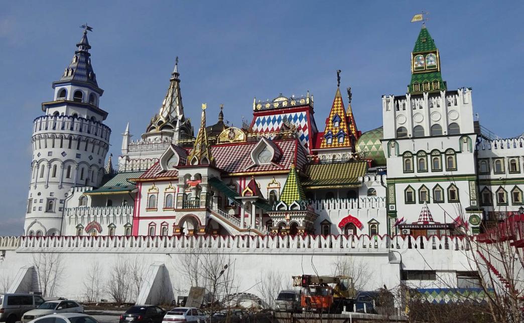 Архитектурный ансамбль Кремля создан по чертежам и гравюрам царской резиденции XVI-XVII веков, находившейся недалеко от этого места. Сегодня это культурно-развлекательный центр "Кремль в Измайлово", постройки которого расположены на холме, поэтому белокаменные стены, расписные башенки, купол деревянного храма, лопасти ветряной мельницы, сказочные, будто игрушечные крыши видно издалека