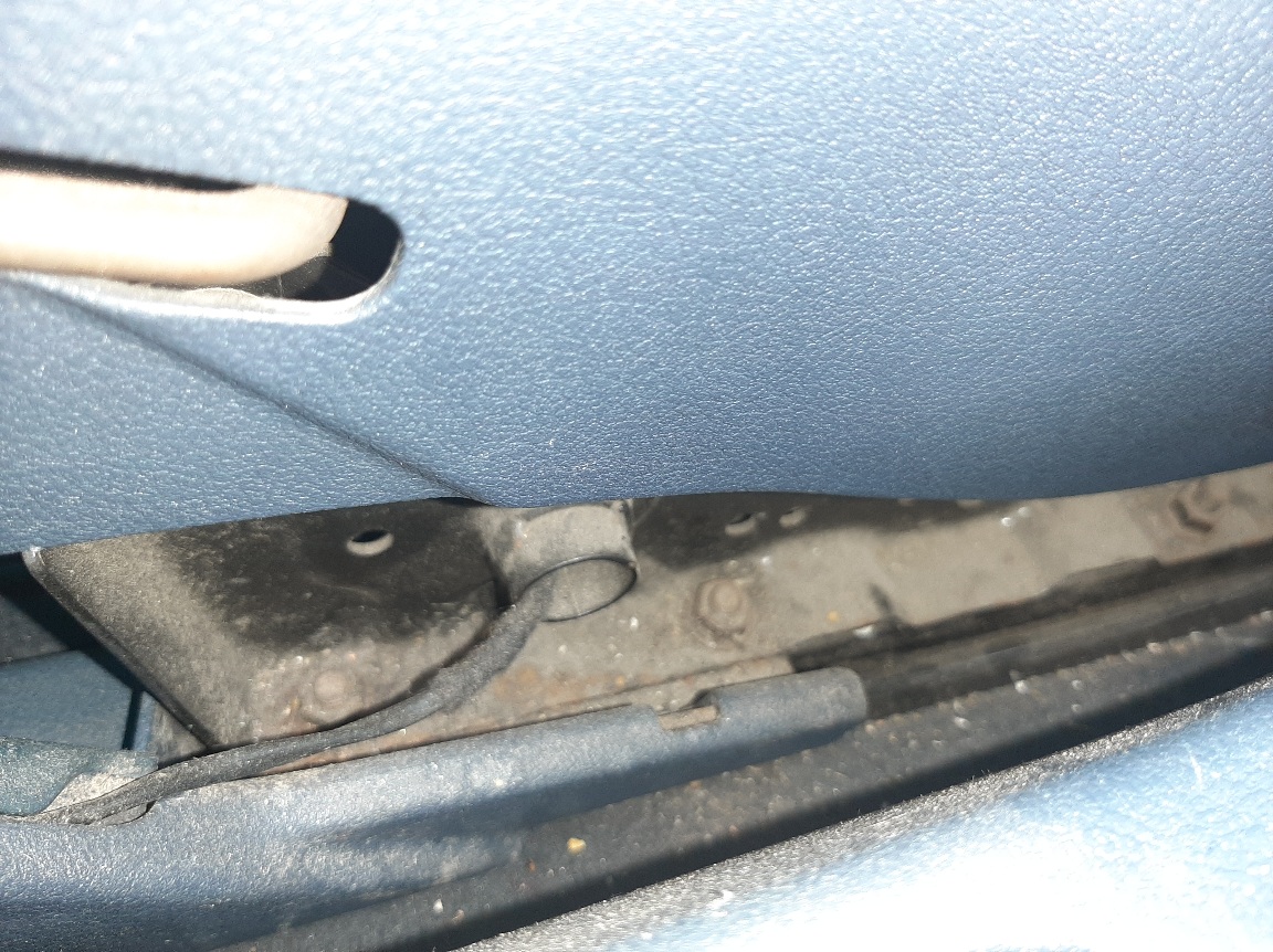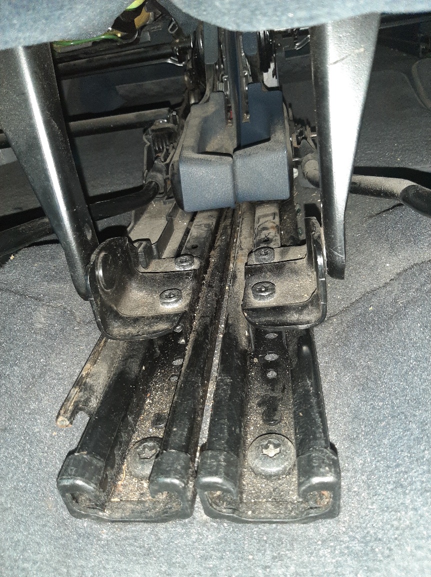 Между сидениями и под ними не убрано, механизм продольной регулировки сидений тоже не убирали.