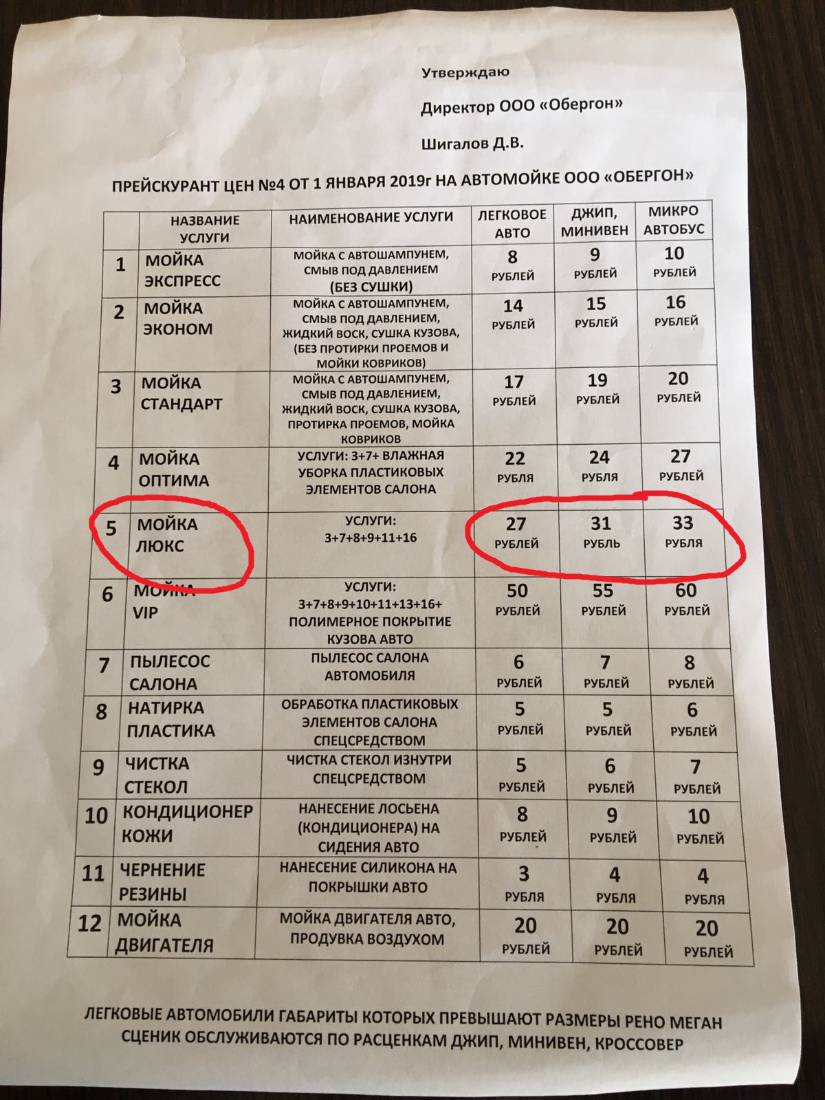 - комплекс XS (мойка авто с шампунем, воск, смыв под давлением без сушки):