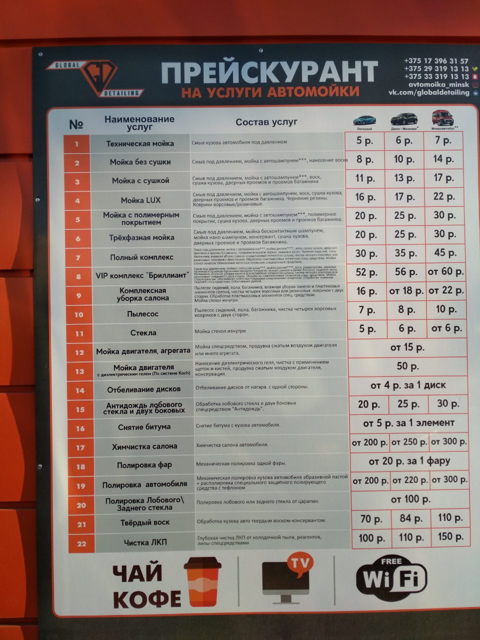 - Остальные услуги реализуются согласно актуальному прейскуранту цен, весь спектр услуг можно посмотреть на сайте и в профиле "Global Detailing"