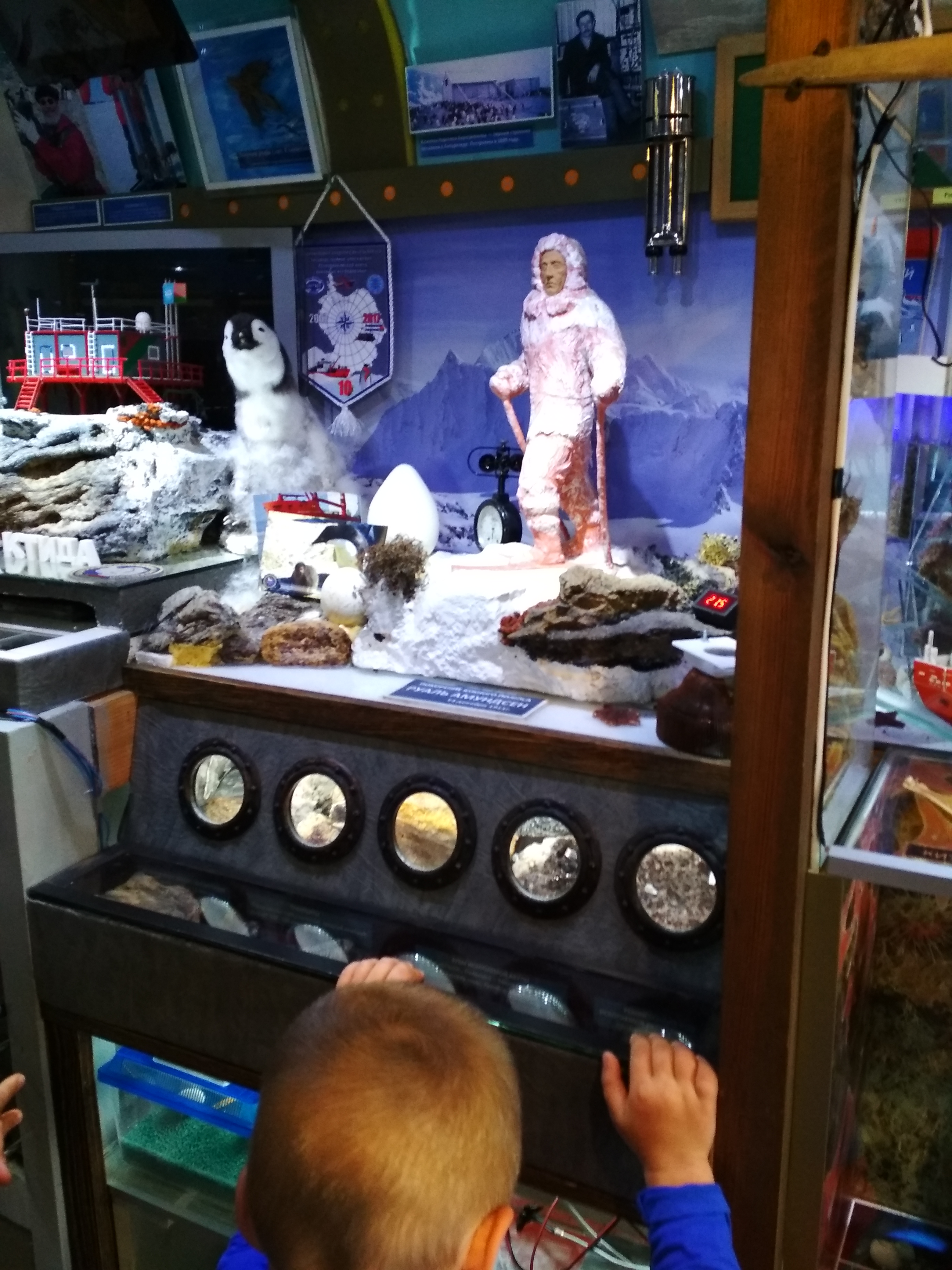 Вы увидите макет белорусской станции, в которой живут и работают полярники Белорусской Антарктической экспедиции, чучело пингвина, минералы, губку-стеклянницу, окаменевшее дерево из Антарктиды.