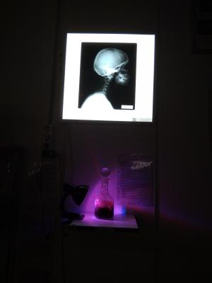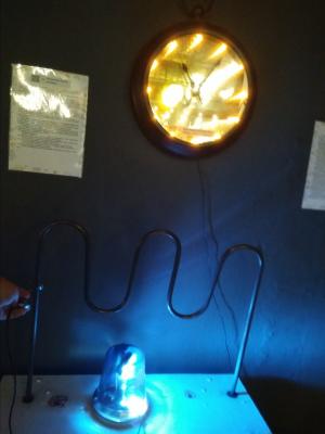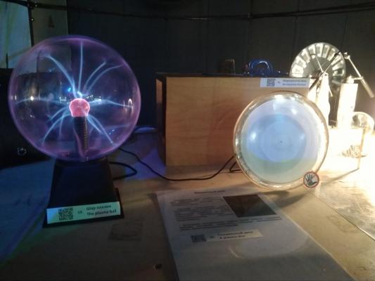 К примеру, на выставке представлен экспонат, который называется радиометр Крупса. В стеклянной колбе находится своеобразная мельница, лопасти которой с одной стороны выкрашены в черный цвет, а с другой покрыты фольгой. Когда рядом стоящая лампочка Эддессона загорается, лопасти мельницы приходят в движение. Свет гаснет - лопасти останавливаются.