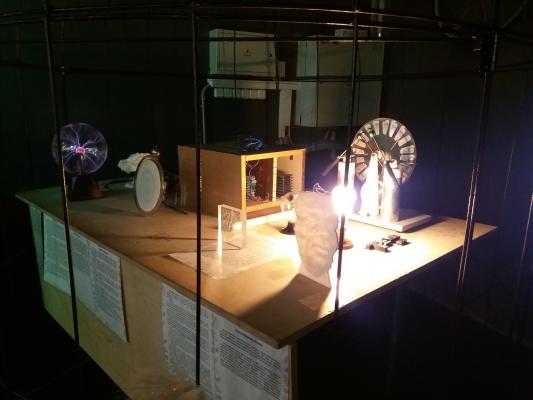 К примеру, на выставке представлен экспонат, который называется радиометр Крупса. В стеклянной колбе находится своеобразная мельница, лопасти которой с одной стороны выкрашены в черный цвет, а с другой покрыты фольгой. Когда рядом стоящая лампочка Эддессона загорается, лопасти мельницы приходят в движение. Свет гаснет - лопасти останавливаются.