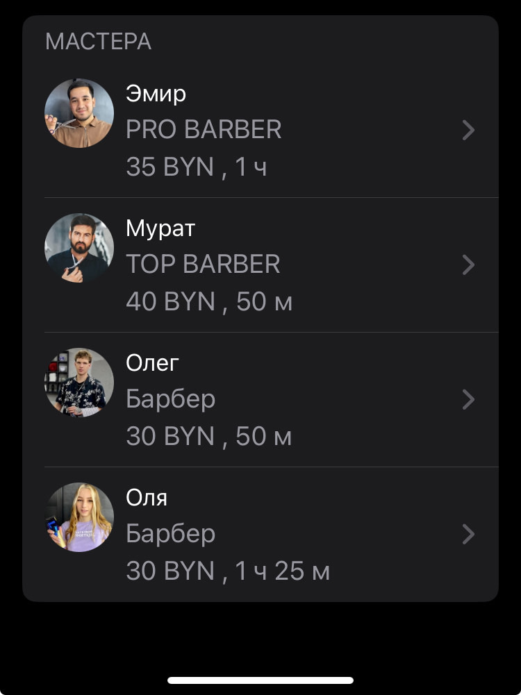 - у про-барбера: 50 р. 70 р.