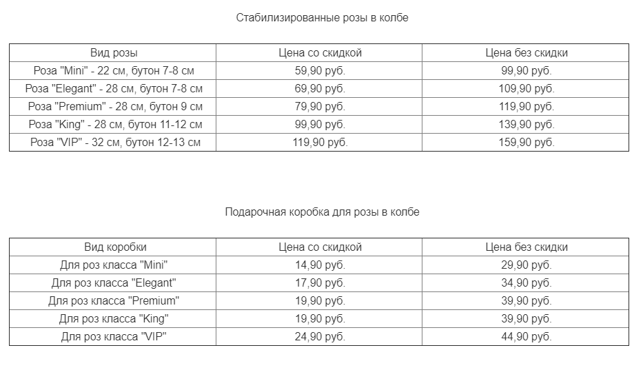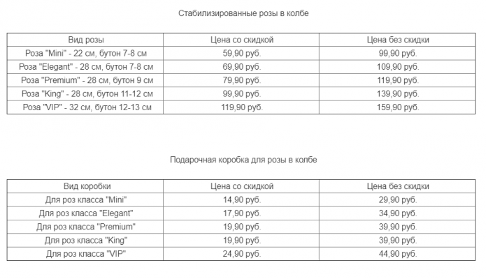 | Для роз класса "King" | 19,90 руб. | 39,90 руб. |