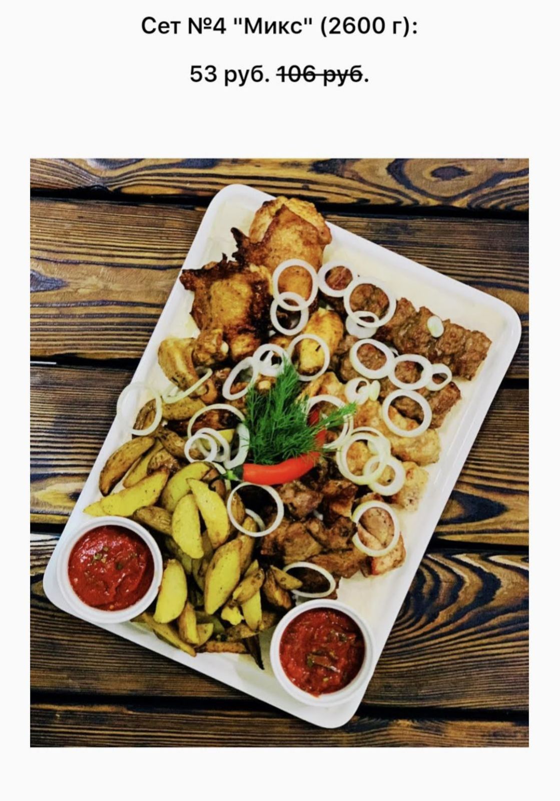 - Промокод дает право на скидку 50% на сеты из шашлыка от службы доставки "Драйв"