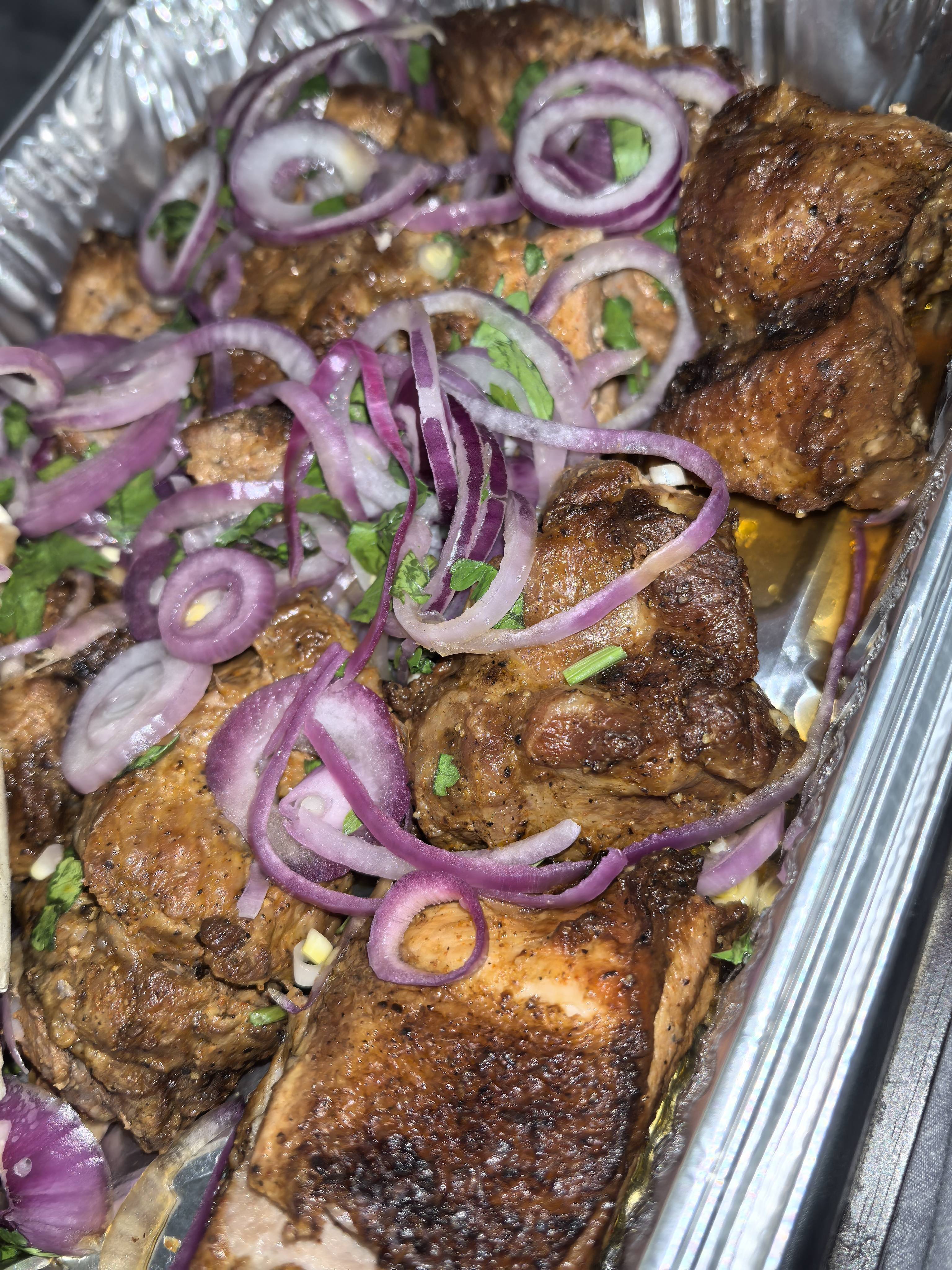 Состав: ребро баранье в маринаде, лук и зелень, лаваш