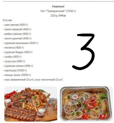 - Возможен самовывоз (время ожидания шашлыка - 25 мин)