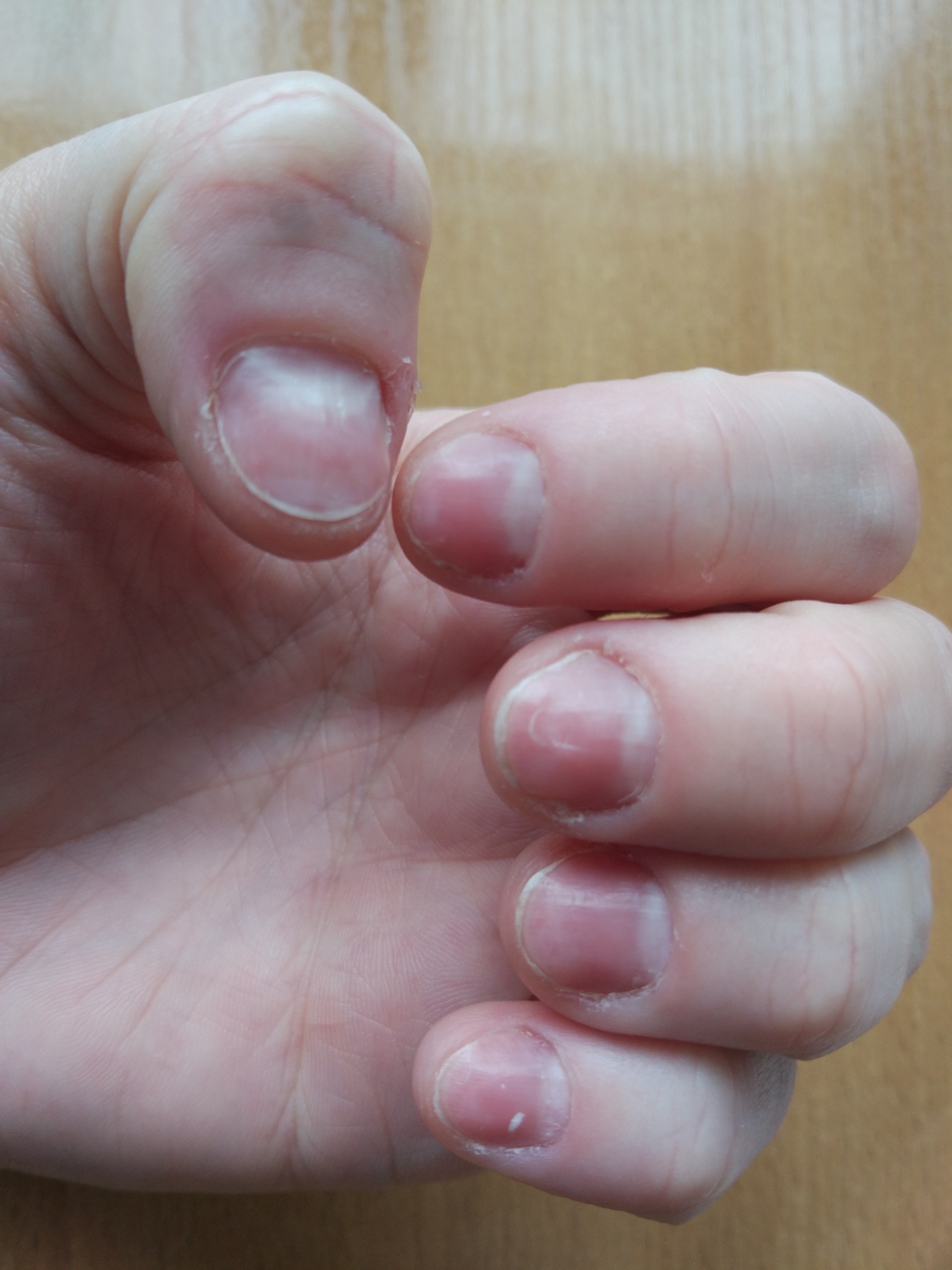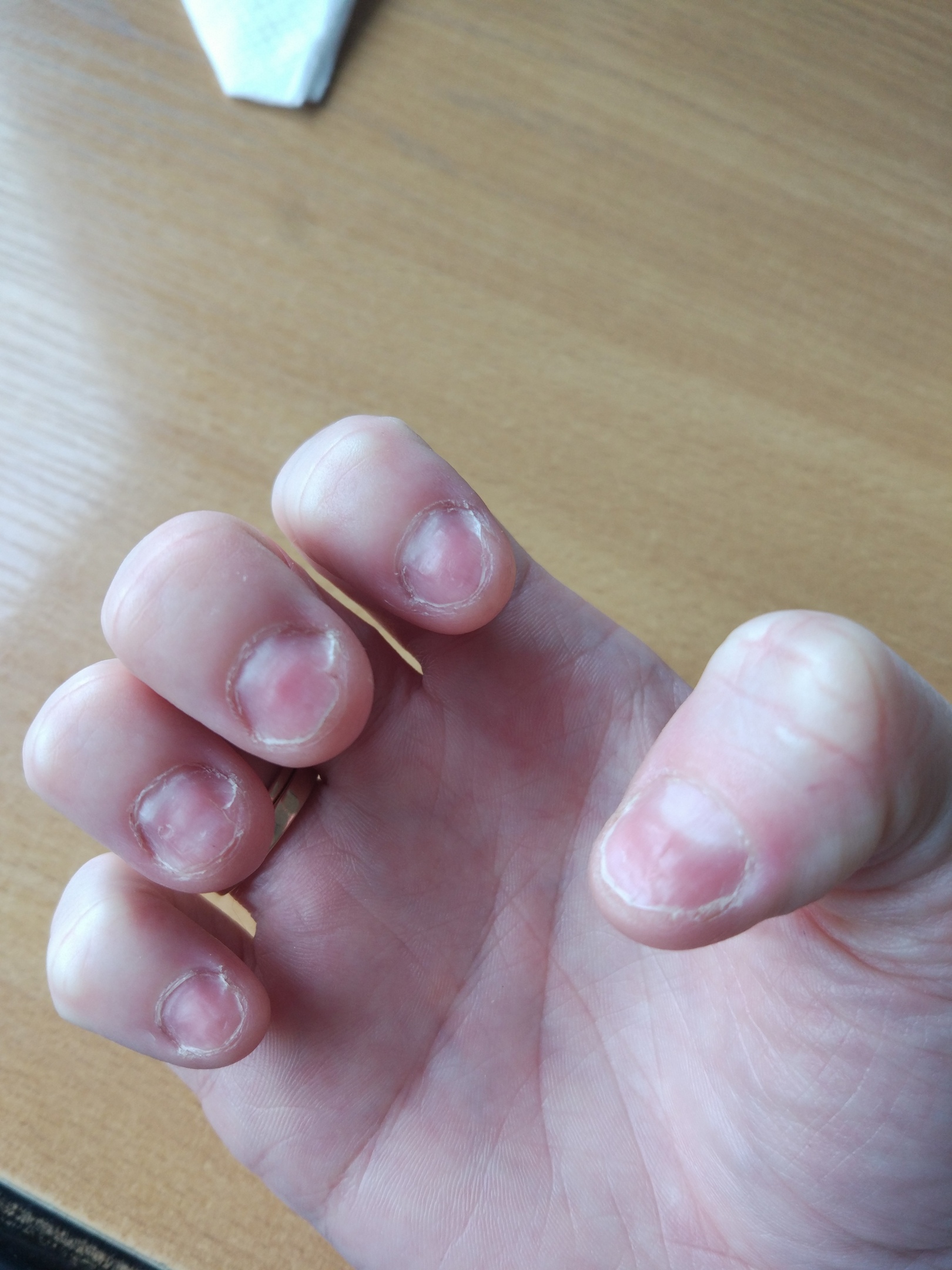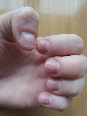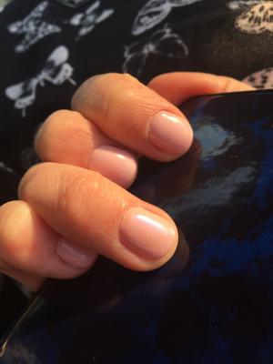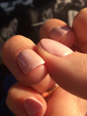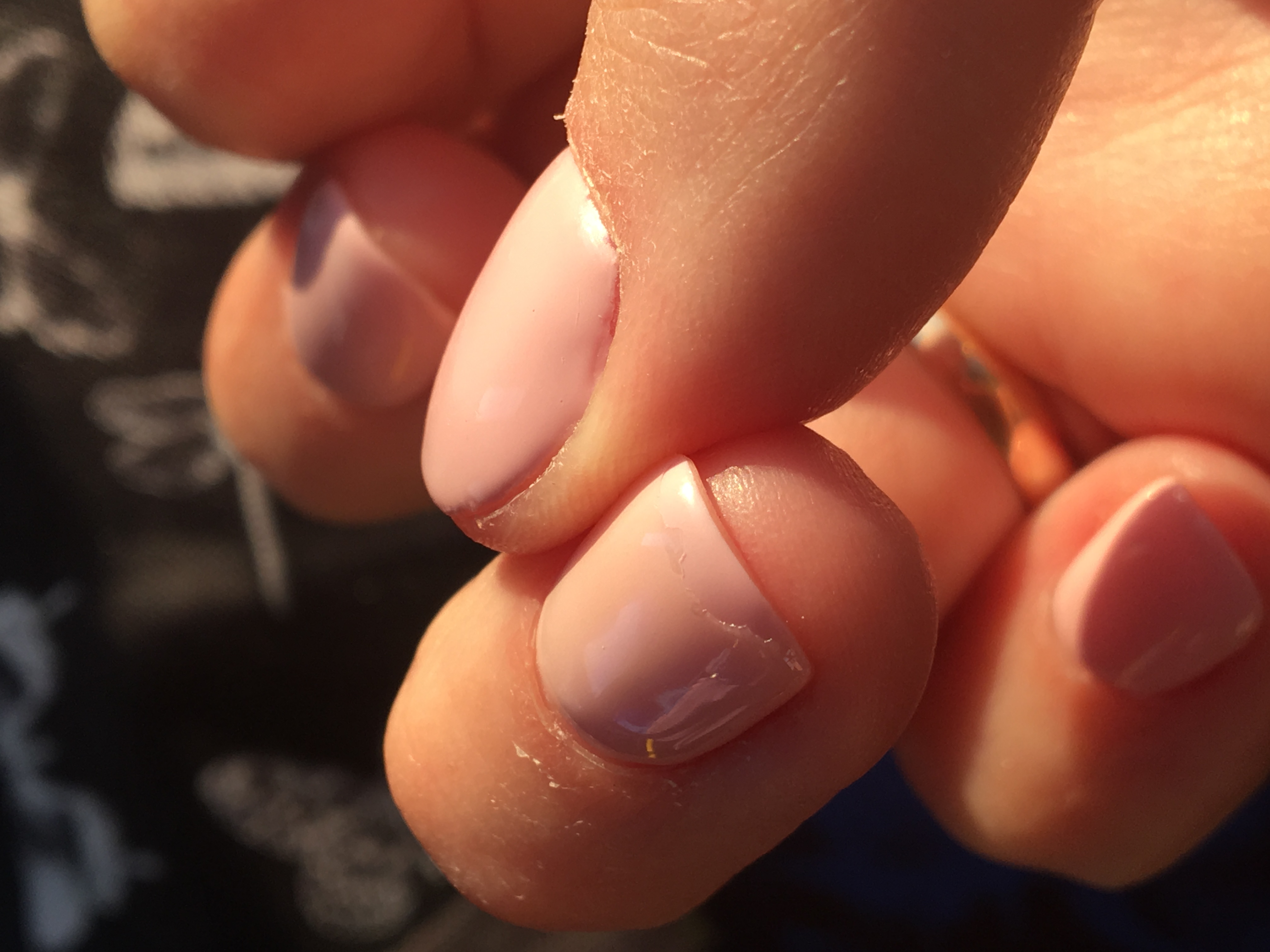 Неприятно вышло. Делала вчера. А сегодня верхнее покрытие пошло сколом на безымянном.