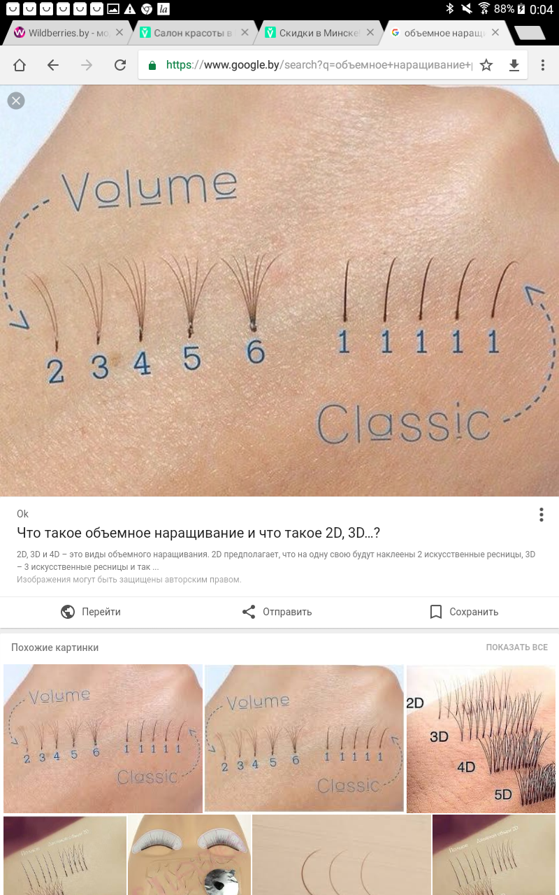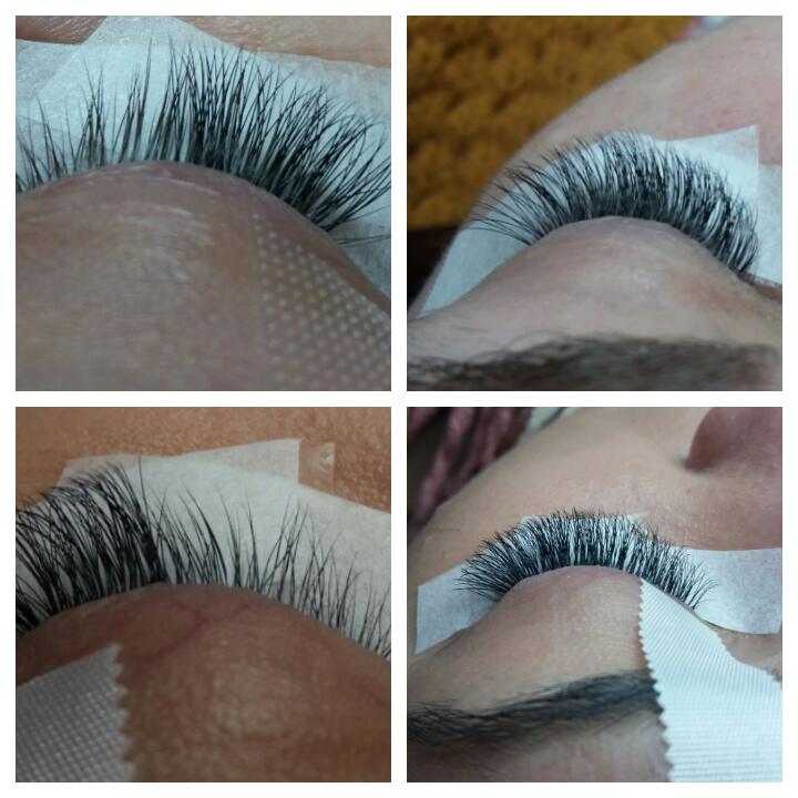 Следующий момент в отношении ресниц приклеенных пучками. Современные технологии наращивания ресниц это объемное наращивание, которое заключается в том, что приклеиваются пучки 2D, 3D, 4D.... 9D. Иными словами 2, 3, 4 .....реснички на одну свою. Для большей наглядности смотрите ФОТО.