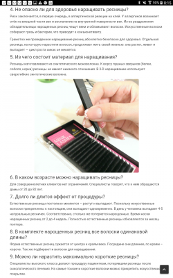 В отношении того, пучек выпадал вместе со своей ресничкой. Жизненный цикл одной ресницы 3 месяца. За это время она проходит все стадии роста и потом самопроизвольно выпадает. И после начинается новый цикл роста реснички. Поэтому выпадение ресничек не считается чем то сверх естественным. Это норма. Для сведения выставляю скриншоты с информацией и ответами. Там подробные ответы на затронутые нами темы. Хочу указать на ПУНКТ 7, где написано, что выпадение ресниц 4-5 шт в день это норма. И что реснички полностью меняются в течении месяца-полтора. И то , что клиентка первое время была довольна пока не стали реснички выпадать. Но выпадение и смена ресниц это норма. А так же немаловажный факт уход за нарощенными ресничками в процессе носки.