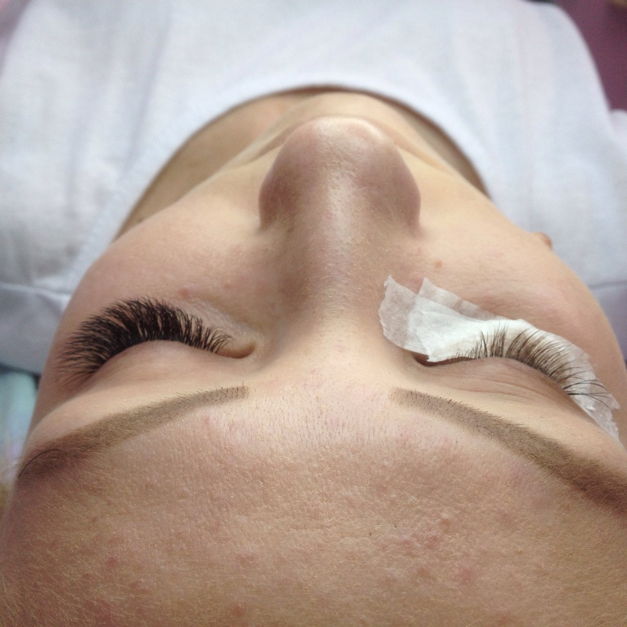 Изначально пациентка должна находиться в горизонтальном положении. На оба века (верхнее и нижнее) наносятся специальные гидрогелиевые пластыри, они же бигуди, которые защитят кожу от используемых препаратов, а также позволят придать форму ресницам.