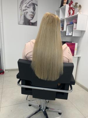 - 100 г волос славянского типа, цвет блонд, шоколад, русый (волосы + работа + стрижка + укладка):