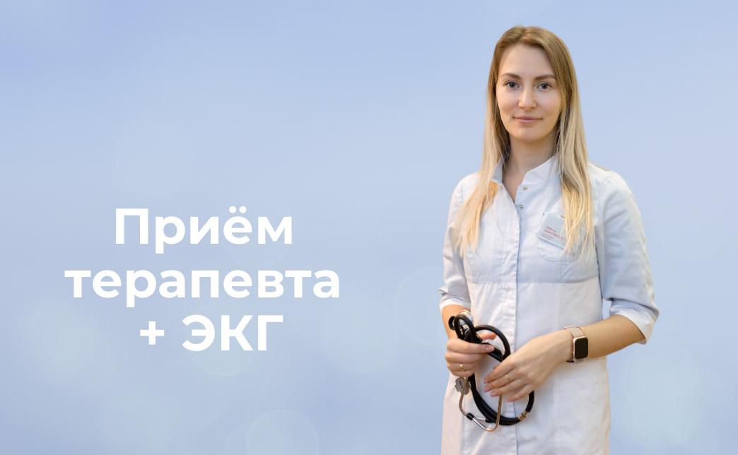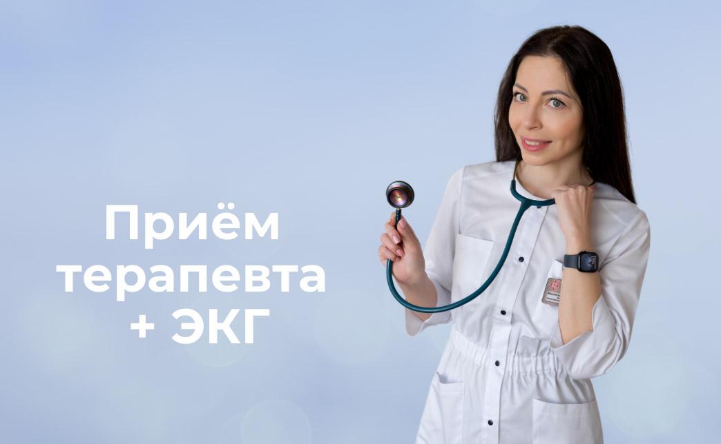 - прием врача-терапевта + ЭКГ (без расшифровки): 35 р. 70 р.