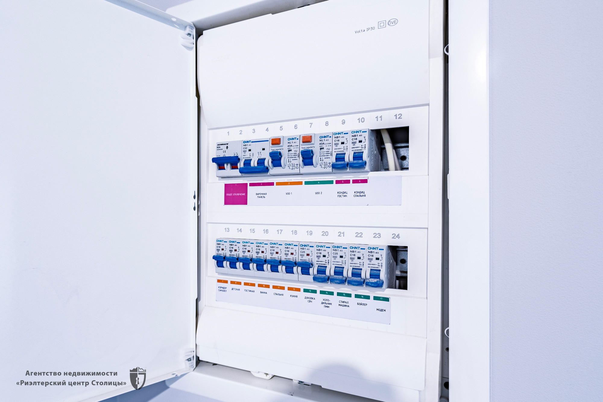 Хозяева продумали всё: сделана разводка под два кондиционера с выводом конденсата в канализацию (никаких вечно капающих трубок на фасад!), для подсветки мебели,окон, выведен аккуратный электрощиток.