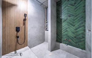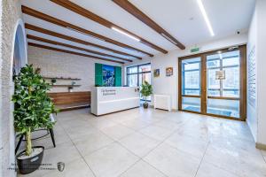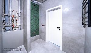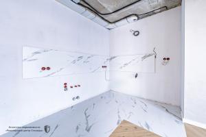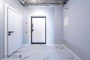 А внизу — просторное лобби: есть холл для гостей, комната матери и ребенка и даже отдельный санузел, где можно ополоснуть велосипед, коляску или помыть лапы питомцу после прогулки.