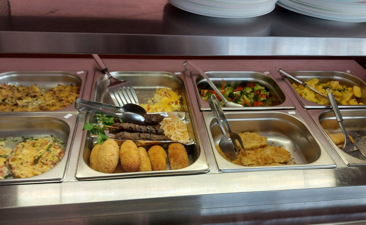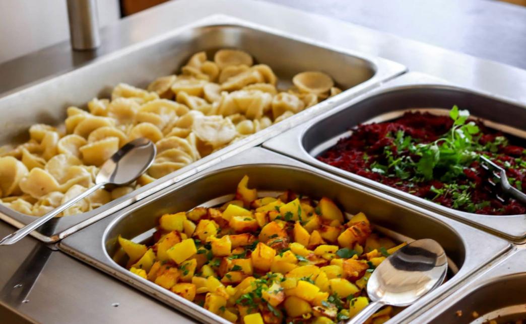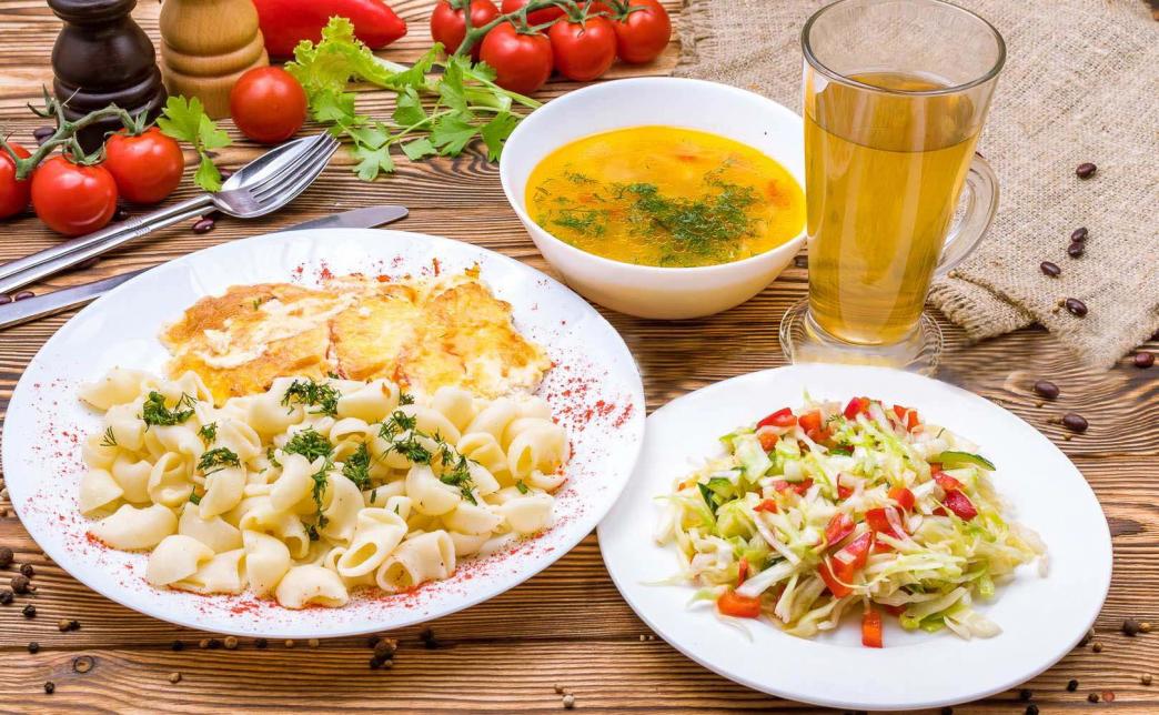 Состав: борщ, свинина запеченая с грибами, гречка, салат из свежих овощей