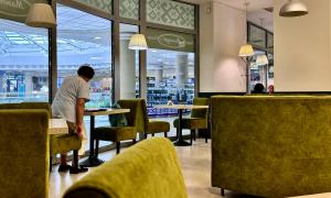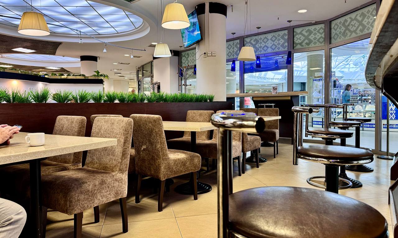 Кафе "Маэстро" расположено в ТЦ "Столица" на верхнем уровне. Когда вы устали от шопинга и решили перекусить, самое время зайти в кафе "Маэстро". Здесь вас ждет уютная атмосфера и по-домашнему вкусная кухня по приемлемым ценам. В кафе можно не только сытно позавтракать, пообедать или поужинать, но и просто выпить чашечку ароматного кофе с  фирменными десертами.