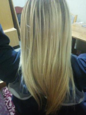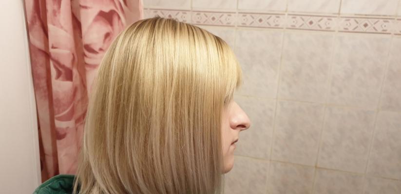 Здравствуйте. Окраска получилась очень странной, с одной стороны хороший переход, а с другой пятнами. Пол головы длинный темный корень, половина светлые. Цвет где то желтит, где то синит.  очень растроена, теперь месяц ждать что бы перекраситься... и как исправить асиметрию не знаю