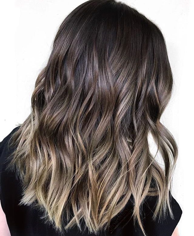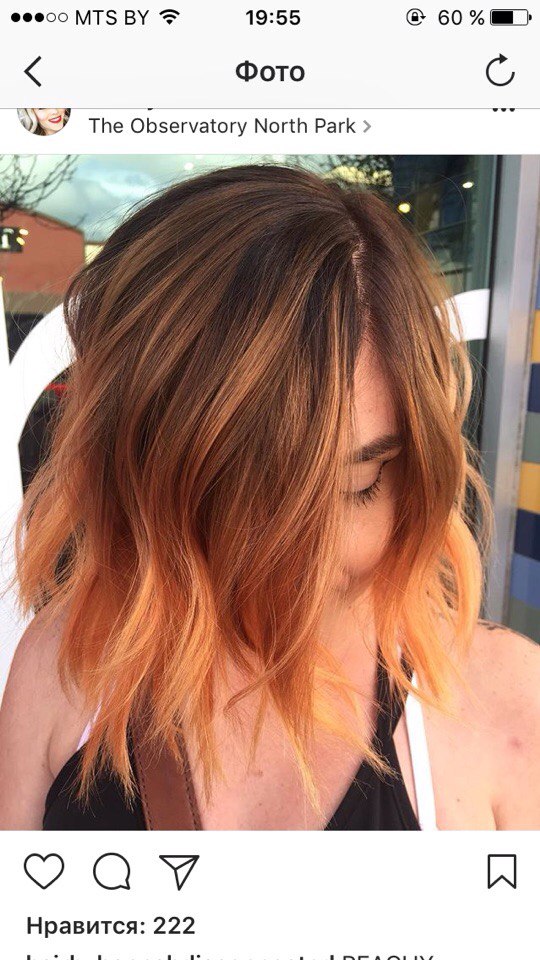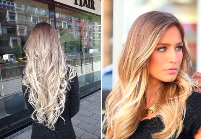 Омбре. Также такой вид окрашивания называют деграде, Dip-Dye, балаяж, поперечное колорирование. Суть этого метода в том, что волосы у корней окрашивают в один тон, постепенно, по длине волос он меняется и к кончикам перетекает в совершенно иной. Варианты окрашивания могут быть разными: корни - темные, а кончики светлые, либо наоборот: светлые - у корней, темные - к кончикам. Причем, контрастный цвет может начинаться как у самих висков, так и около кончиков волос.