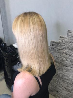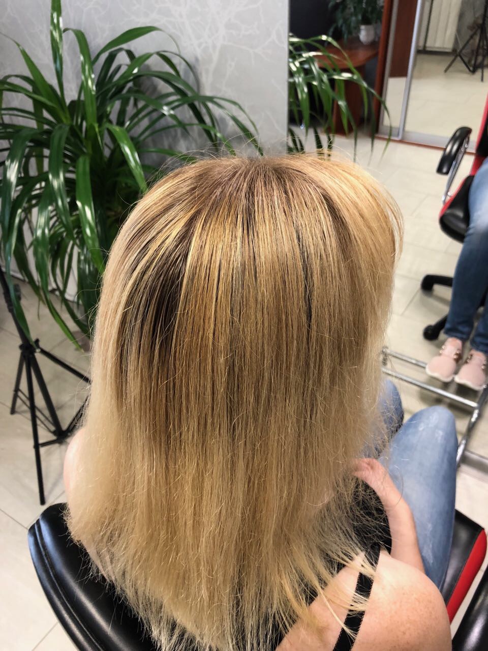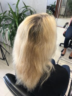 - Окрашивание корней до 3 см в один тон + сушка по форме: