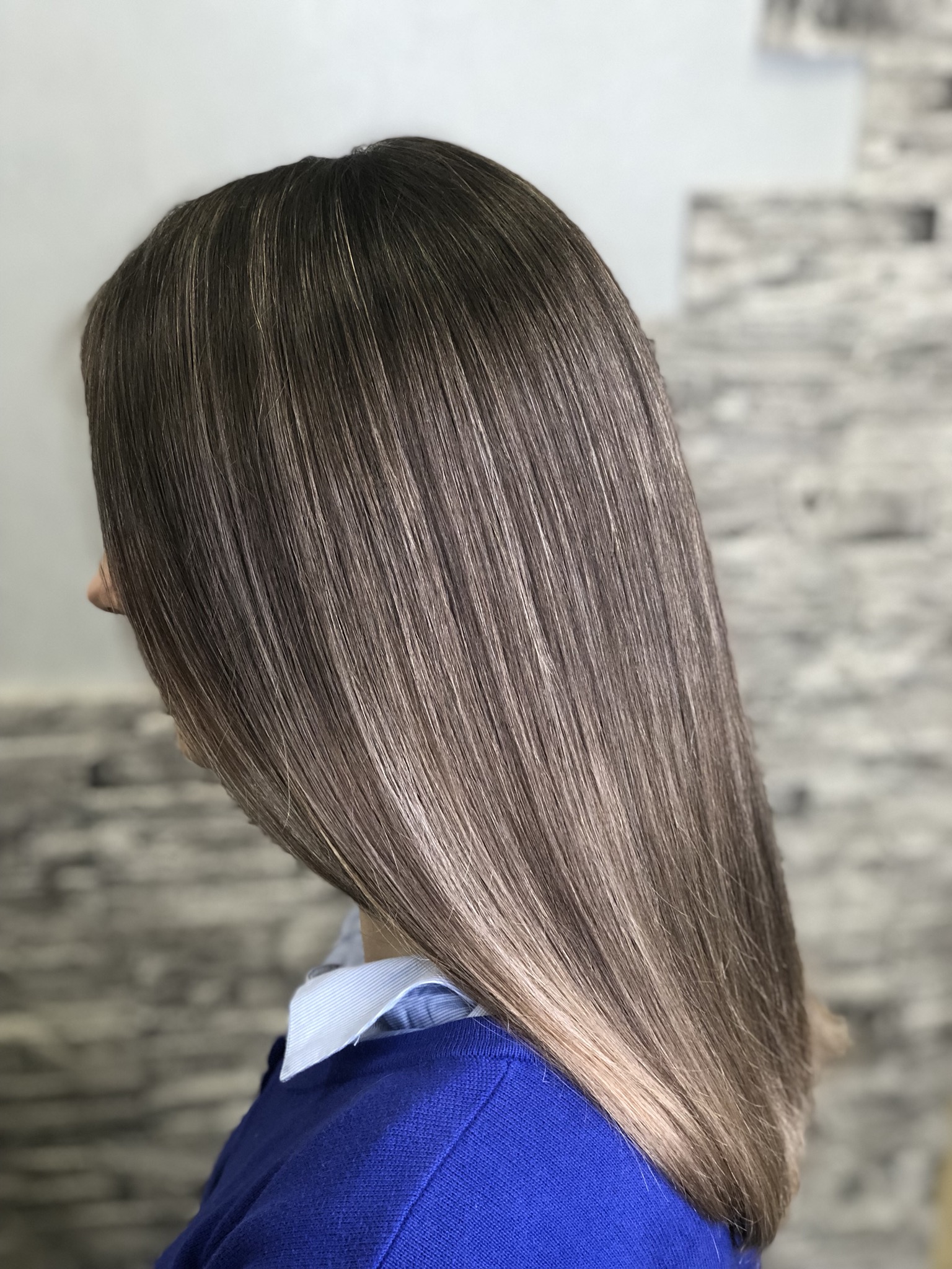 тк я хотела оставить максимум свой натуральный цвет , только осветляли пряди и тонировали.