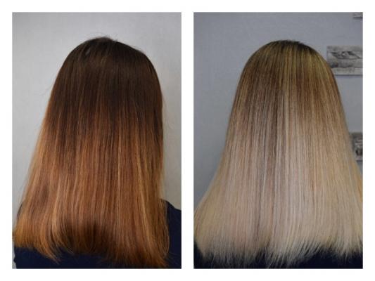 Выкладываю фото до окраски, после окраски и после укладки плойкой.