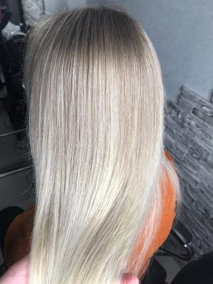 Выбрала салон и мастера исключительно по отзывам. И не прогадала! Кропотливо, аккуратно можно сказать с любовью Артем сделал мне благородный блонд. Больше всего боялась, что может вылезть рыжий, но никакого намека на него не случилось, это чудо!) Такой яркой блондинкой я еще не была!) Спасибо!