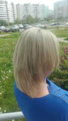 - средний волос: 40 г осветляющего порошка, 120 г красителя