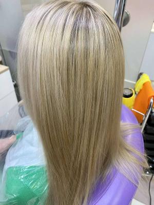 Была на сложном окрашивании- очень понравилось! Сделали, как я и хотела, подтемнили корни под натуральный цвет+ сделали светлые пряди.