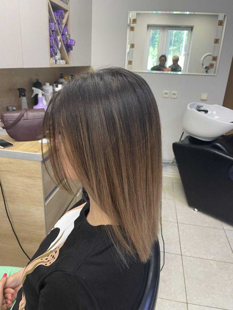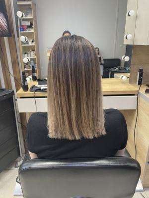 - сложное окрашивание волос (омбре, шатуш, балаяж, AirTouch) + сушка феном + уход ароматерапия + закрепление цвета в подарок (с учетом красителя) (время процедуры: 4-6 часов):