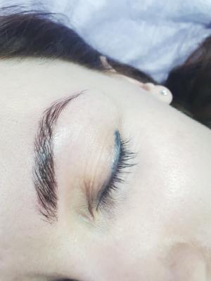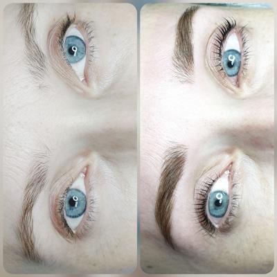 - окраска бровей или ресничек краской, перманентной краской или хной (по желанию возможна окраска в разные цвета для придания объема, экстравагантности бровям).