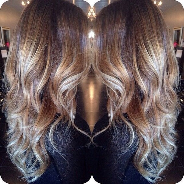 Такая технология окрашивания позволяет создать на Ваших волосах плавный переход от светлых кончиков к более темным корням, делая цвет более глубоким и добавляя объем Вашей прическе. Выглядит такой цвет очень естественно за счет эффекта натурально выгоревших волос.