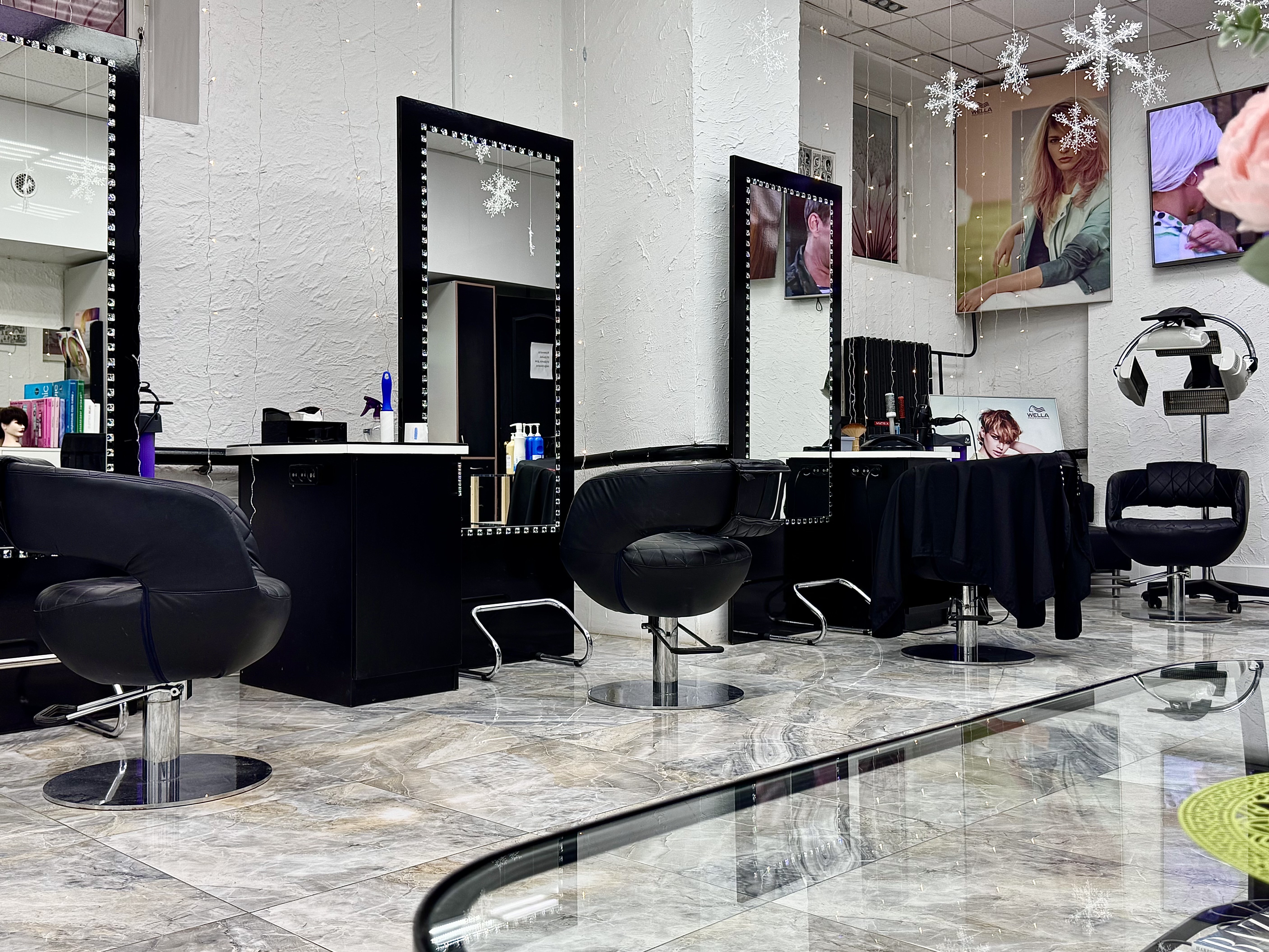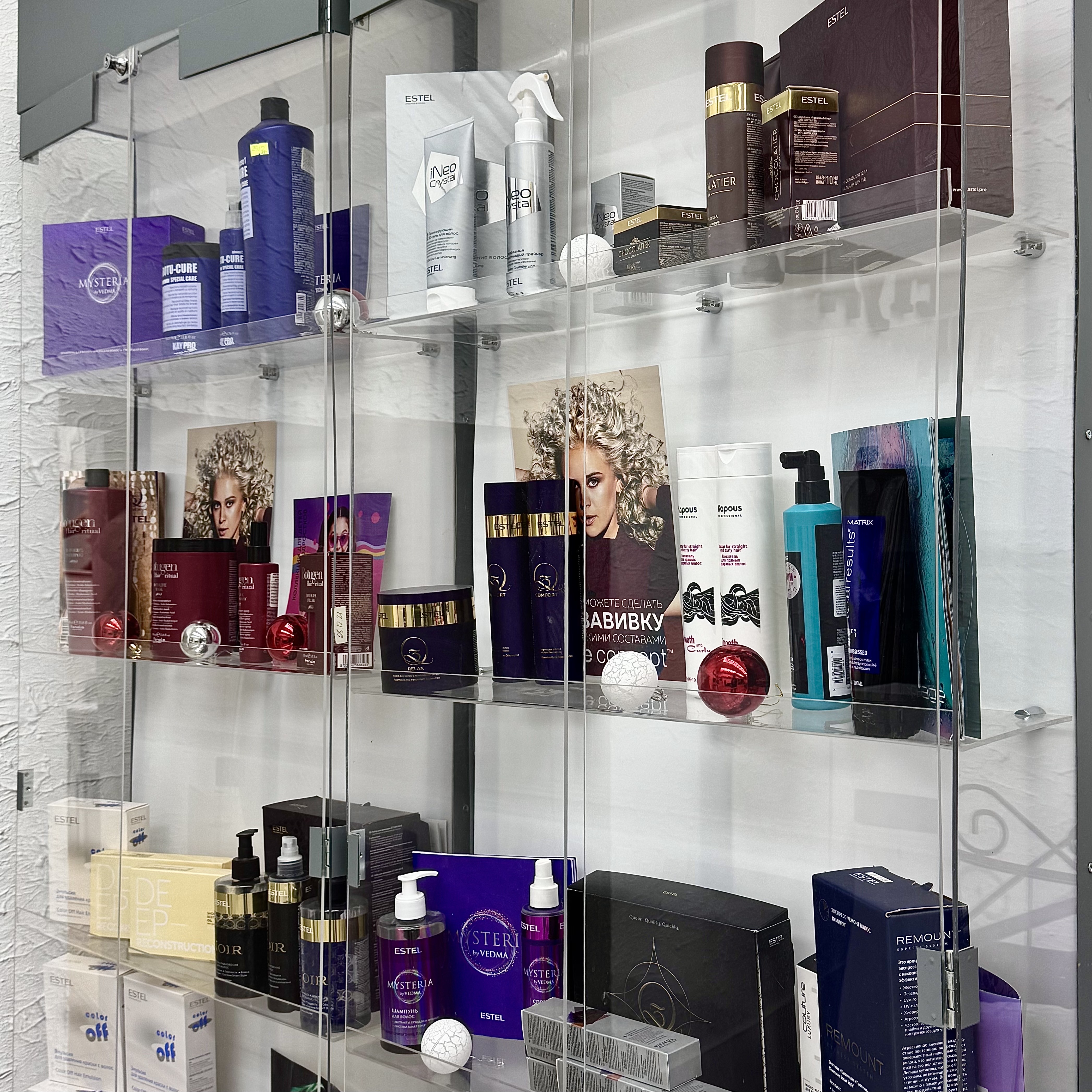- Используется продукция фирмы "Estel", "Matrix", "Kapous" и "Sergio"